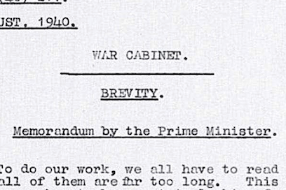 Een memo over memo’s, geschreven door Winston Churchill. Hij hoopte dat zijn bestuurders hun breedsprakigheid tijdens oorlogstijd even konden opschorten. Er waren belangrijkere dingen te doen dan lezen.